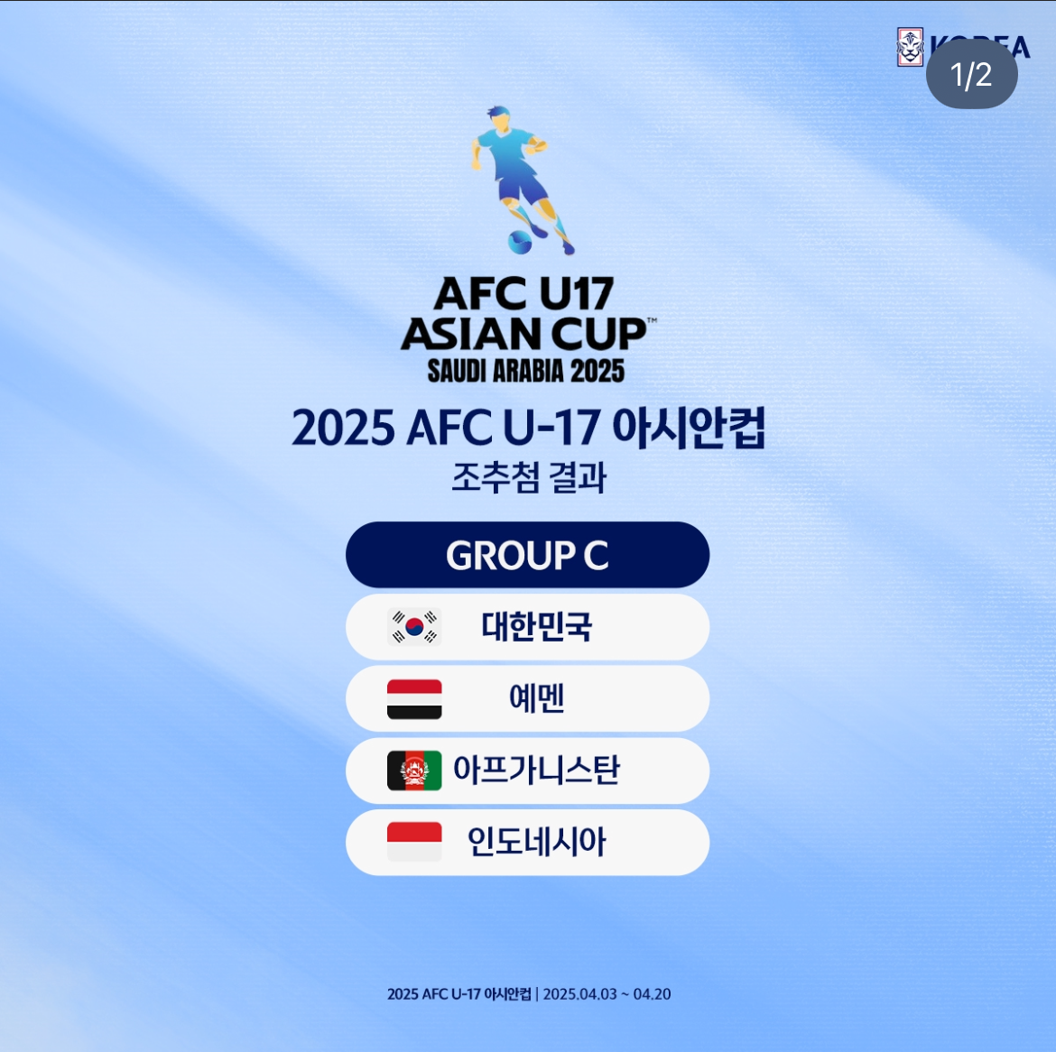 2025 AFC U-20 아시안컵 경기 일정과 조편성을 미리 확인하고, 대한민국 대표팀의 경기 시간을 놓치지 마세요! 또한, 2025 AFC U-20 아시안컵의 생중계 채널과 온라인 중계 시청 방법을 상세히 안내해드립니다. 대한민국 대표팀의 활약을 실시간으로 응원하고 싶다면, 아래에서 2025 AFC U-20 아시안컵 중계 정보를 확인하고 빠르게 시청하세요!
